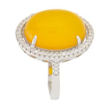 Espectacular anillo hecho en plata con un ágata amarilla central rodeada de circonitas, es un anillo elegante y sofisticado.