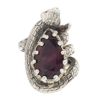 Anillo de serpiente con un granate, de plata, hecho a mano, pieza única.